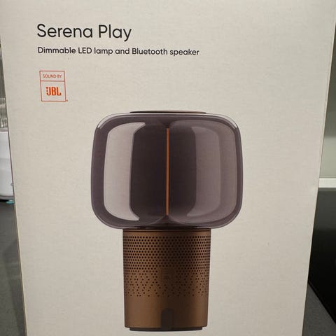 JBL Serena Play Bluetooth højttaler med LED lys. Højttaleren har en integreret LED-lampe, der kan justeres for at skabe stemningsbelysning. Designet til trådløs afspilning via Bluetooth, velegnet til brug i hjemmet som både lydkilde og dekorativ lampe.