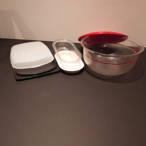 Sælger her en stor 4 liters Tupperware modulet beholder. Den har to lågåbninger.
