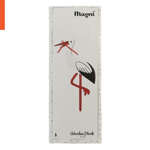 En træstork fra mærket Magni, der kommer med rødt og blåt bånd. Storken er 55 cm høj og designet til dekorative formål. Den er lavet af materialer af høj kvalitet og følger skandinavisk tradition og mytologi.