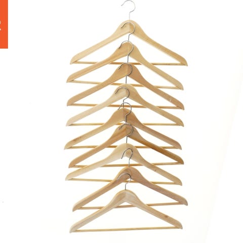 Et sæt af fem hvide bøjler, hver af dem 43 cm lange. Disse bøjler er designet til at holde tøj og hjælpe med at organisere garderoben. Hver bøjle har en slids for nem ophængning af stropper. Skinnende metal kroge giver et stabilt greb, når hængende. Tags: bøjler, garderobe, opbevaring, tøj