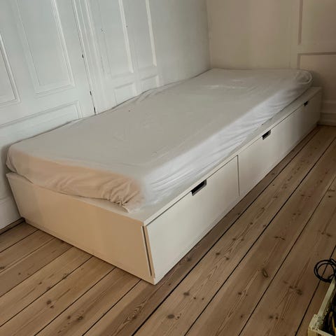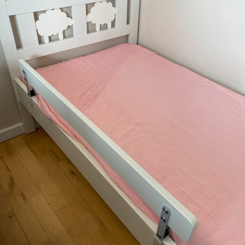 ‘Gilleleje’ seng fra JYSK. 90x200. Madras medfølger i god stand. Siden kan tages af eller rykkes.