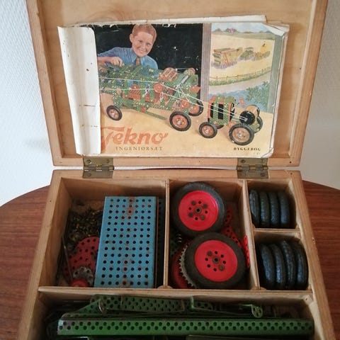Tekno Ingeniør dele + trækasse. 1950´erne.