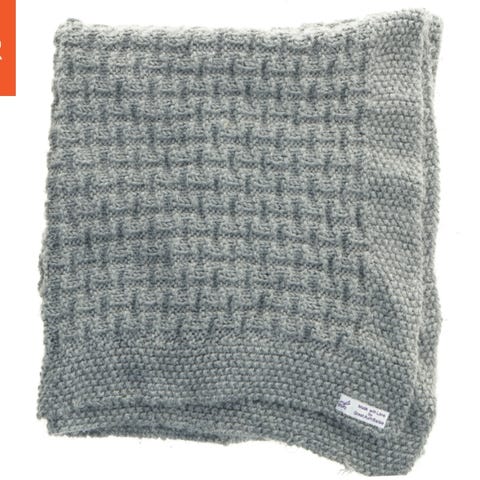 Strikket blå plaid / tæppe med hvide stjerner fra GANT (str. 130x180 cm)
