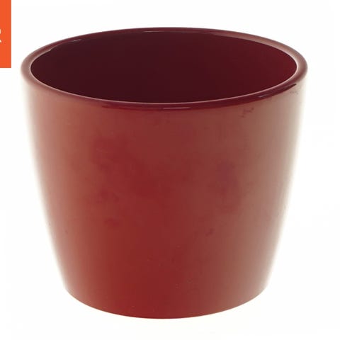Dette objekt er en lille, gul urtepotteskjuler fremstillet af keramik. Den har en enkel cylindrisk form og en klar gul farve på ydersiden. størrelsen er 9,5 cm i højden og 12 cm i diameter