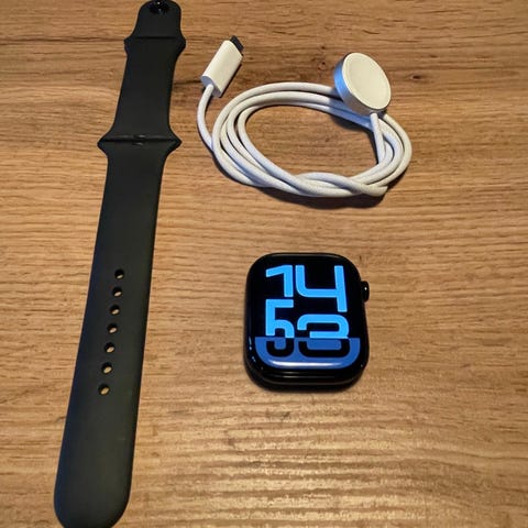 Apple Watch S10 46mm GPS (Jet Black Aluminium/Black sportsrem). M/L. Der medfølger original indpakning og charger.