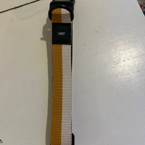 Hay hundehalsbånd i lilla og grøn farve. Halsbåndet er justerbart og lavet af holdbart materiale.