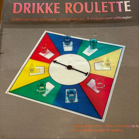 Spin the Shot er et drikkespil, der består af et shotglas monteret på en roterende base med en pil. Når basen spinnes, peger pilen på en spiller, der skal tage et shot. Det simple design gør det til et sjovt og let spil til fester.