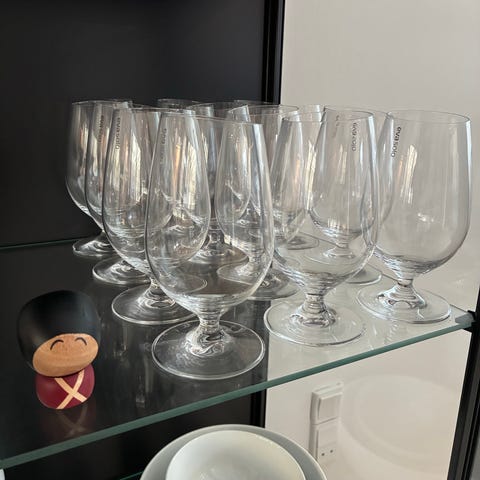 Et sæt bestående af 4 ølglas med en diameter på 7 cm og en længde på 23 cm hver. Glassene er høje og slanke og velegnede til servering af en god øl.
