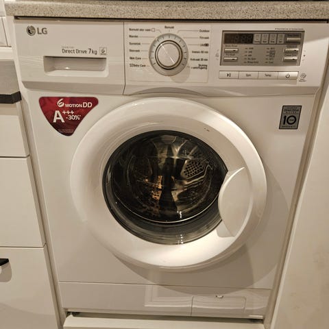 Den fulgte med huset, egentlig fin men trænger til at blive renset.