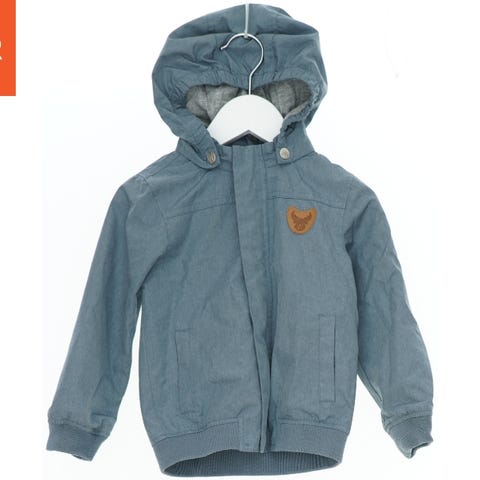 Dette er en børnevinterjakke i blå farve fra mærket Wheat. Jakken har en hætte og lukkes med en række knapper foran. Der er to store lommer foran. Jakken er blød og i et åndbart materiale og vandafvisende.