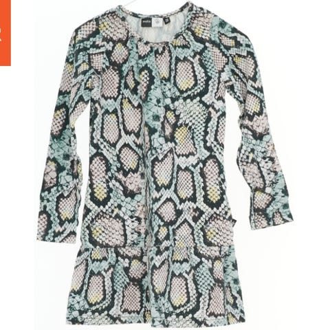 Kortærmet kjole med et farverigt print af delfiner i en lilla farvenuance. Kjolen har en rund halsudskæring og er designet i en let og behagelig stil, ideel til sommerbrug.