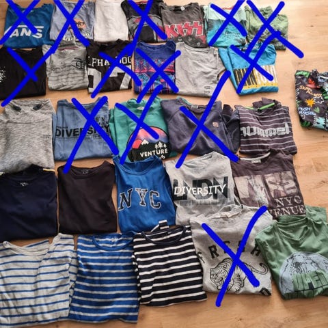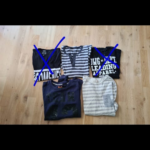 1 blazer, 2 langærmet bluser, 4 t-shirts