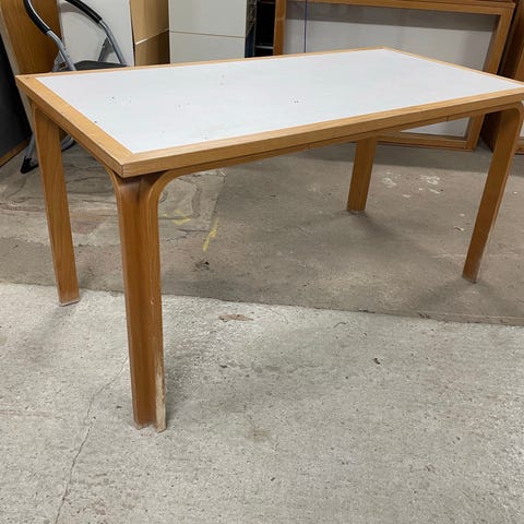 • Materialer: Sort laminat bordplader med synlige, lyse kantlister i birkefiner. Ben i massivt lyst træ.