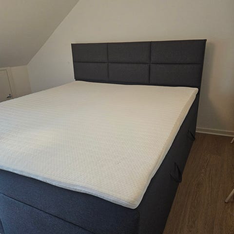 Købt i 2023 fra Drømmeland for 12.000kr for et samlet seng, jeg sælger dog kun madrasserne og topmadrassen, da min nabo får sengerammen.