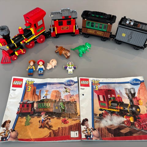 LEGO Toy Story 7597 i meget god stand der mangler en sort rund klods er udskiftet med en mørk grå ellers komplet sender gerne