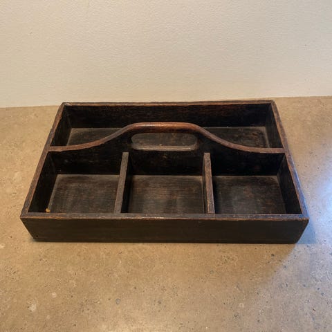 Opbevarings kasse med håndtag i træ.