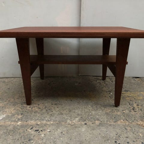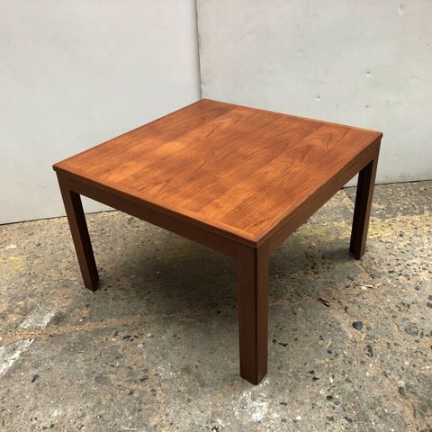 Mindre sofabord i massiv teaktræ,med skråstillet ben.
