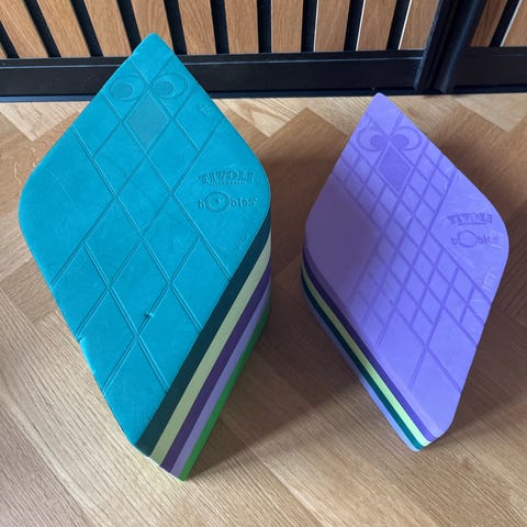 2 sjove bobles fugle som kan kombineres til trædesten og bruges til forhindringsbanen eller en anden sjov fysisk leg. De kan kombineres på et utal af måder og opfordrer på den måde til kreativ leg.