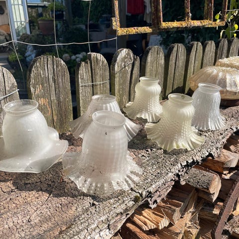 Flæseskærme 2 stk 75 kr den ene har lidt afslag i toppen hvor fatning skal sidde se billed hvis du kun tager en er det 50 kr pr stk. 5,5cm i top