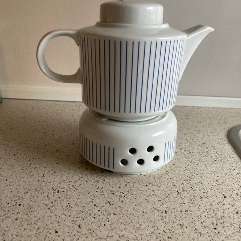 Porcelæn, Thekande med låg, Sort thekande, Sort thekande med låg. Har fået afslag på glasuren ved tuden og på den del af låget der går ned i kanden. Derfor den billige pris.
