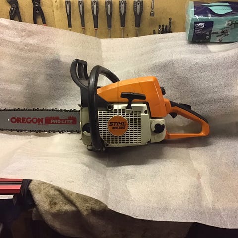 Stort set ikke brugt da jeg altid har skåret det meste brænde i skoven.