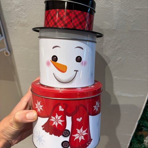&Tradition juleopbevaringsdåser i metal med forskellige størrelser og juletemaer som snemænd og julemand. Dåserne er designet til opbevaring af småting og dekorationer i juletiden.