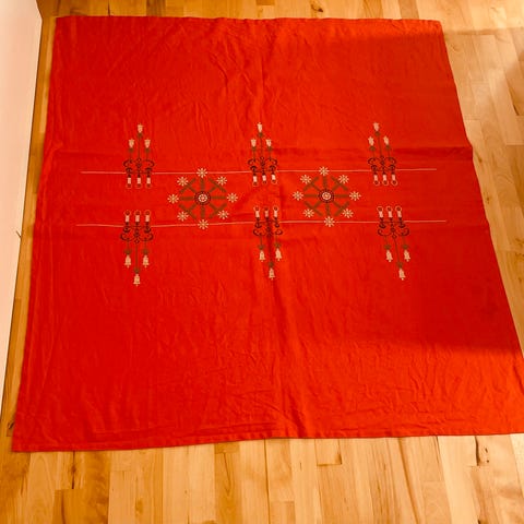 Dæk et rustikt julebord med denne dug i grovftvævet bomuld.