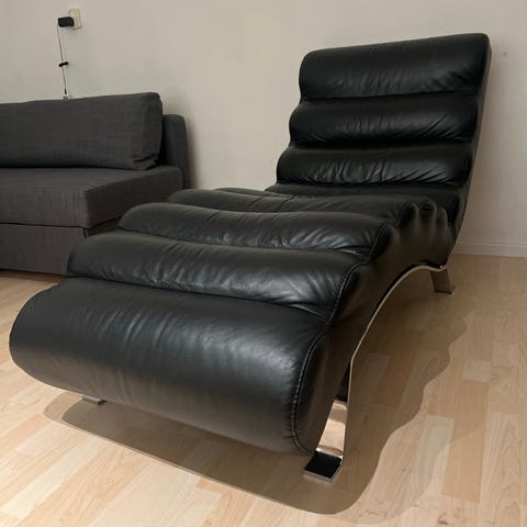 Sort læder chaiselong fra ikke ryger og dyre hjem.