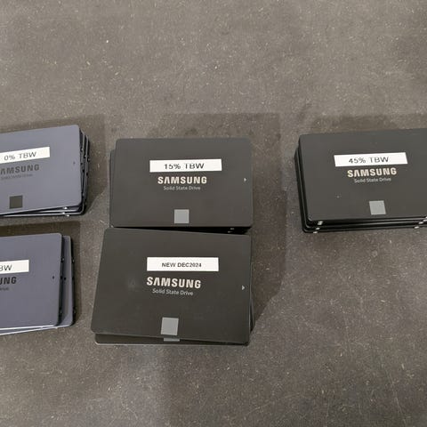 Vi har 4 styk Samsung QVO 2TB - Pulls fra servere i vores datacenter. % værdi nedenfor er "Percentage Used Endurance Indicator" fra SMART. All diske er formateret (NTFS)