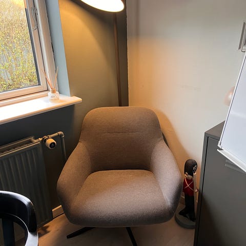 Hej! Jeg har en fed brun lænestol med skammel til salg. Tlf 81939925