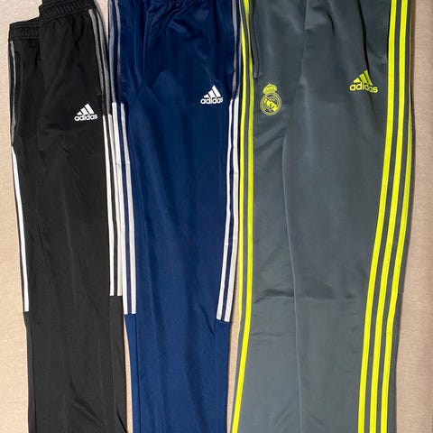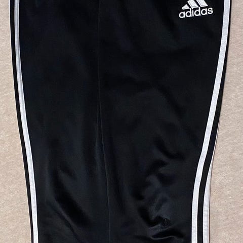 Adidas træningsbukser til børn i størrelse 152. 11/12 år. Bukserne er sorte med hvide detaljer og velegnede til fodbold. Materialet er designet til sportsbrug og komfort.