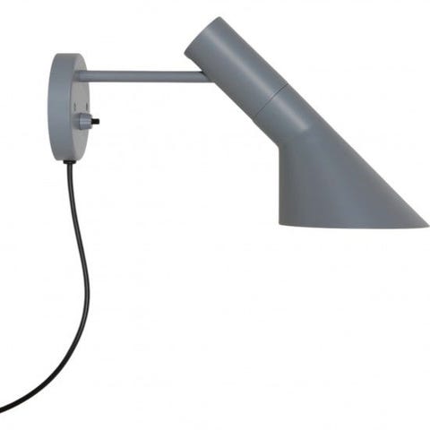 Arne Jacobsen mørkegrå væglampe, fremstillet i stål. Lampen fremstår som ny uden synlige tegn på brug.