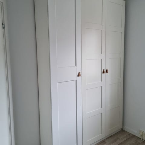 IKEA PAX garderobeskab med hylder, skuffer og skoreoler.
