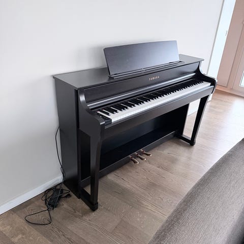 Yamaha Clavinova digitalpiano i blank sort farve.