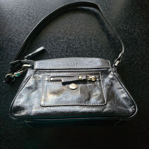 Taske i læder med mange skønne rum. 6 kortholder rum. 2 store indvendige rum. Det ene med lynlåslomme, det andet med en åben lomme. Bagpå tasken er der også en lynlåslomme.