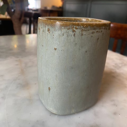 Palshus vase med super smuk glasur. I perfekt stand! 12 cm høj.