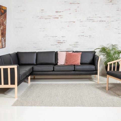 Her står sofaen som 5 pers. hjørnesofa L 204 x H 82 x D 204 cm. Siddehøjde 47 - siddedybde 52.