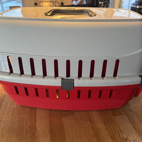 Sælger denne super fine transportkasse, som er som ny. Har været brugt i 20 min. Kan selvfølgelig bruges i bil såvel som hjemmet. Længde : 42 cm. Bredde : 32 cm. Højde : 28 cm.