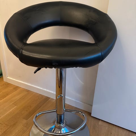 Set of two black bar stools in very good condition, barely used. Clean, modern design that fits perfectly in a kitchen, bar area, or home office.