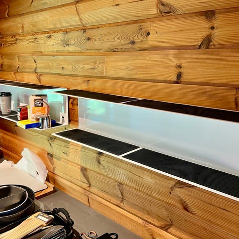 Vipp 922 hylden er fremstillet i 3 mm aluminium, som bukkes til en U-form, således opstår der to hylder. Hylden kan monteres på et usynligt beslag, så den nærmest svæver frit på væggen. Fladerne på begge hylder er beklædt med silikonemåtter for at beskytte eksempelvis glas og porcelæn, der placeres på hylden.