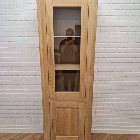 Smalle Provence vitrineskabe i egetræ.