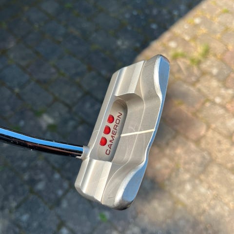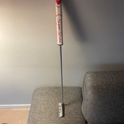 Scotty Cameron Select Newport 2 putter med stål skaft og rød grip.
