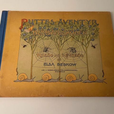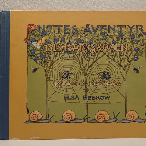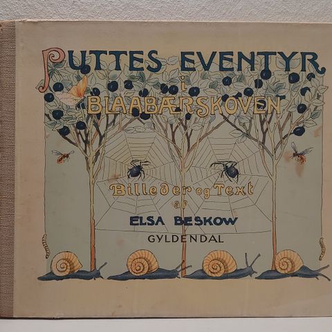 "Puttes eventyr i Blåbærskogen" af Elsa Beskow og illustreret af forfatteren i farver.
