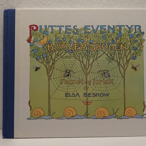 "Puttes eventyr i Blåbärskogen" af Elsa Beskow og illustreret af forfatteren i farver.