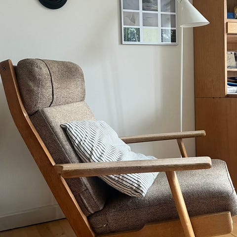 GE290 er et ikonisk dansk design af Hans J. Wegner, kendt for sin høje siddekomfort, solide håndværk og tidløse æstetik. Stolen passer perfekt ind i både moderne og klassiske hjem.