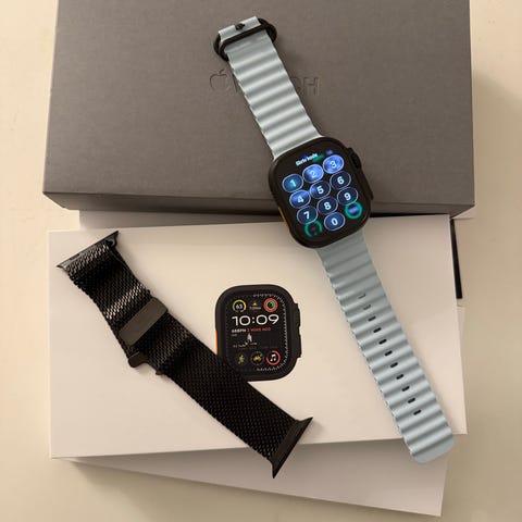 Apple Apple Watch unisex smartur med digitalt display. Uret har en metalrem og kan vise forskellige urskiver og funktioner til daglig brug.Apple Watch Ultra 1 i virkelig god stand med 87 % på batteriet og i original emballage. Ingen ridser og virkelig flot😀