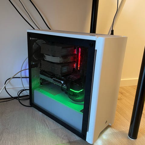 Fin gamer pc der kommer fra røgfrit hjem og jævnligt rengjort. Vandkøler til cpu er ca et halv år gammel med frisk kølepaste