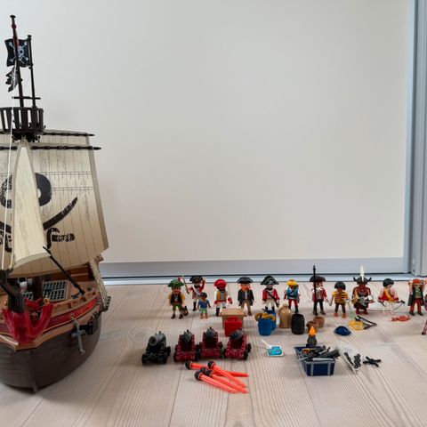 Playmobil Vikingeskib legetøj med tilhørende figurer og våben. Sættet indeholder et vikingskib med rødt og hvidt sejl, flere vikinge-figurer med hjelme og våben samt ekstra tilbehør som skjolde og sværd. Intakt og med samlevejledning. Mulighed for at tilkøbe en motor så den kan sejle i vand. (Ekstra udstyr som vi ikke har tilkøbt i sin tid )