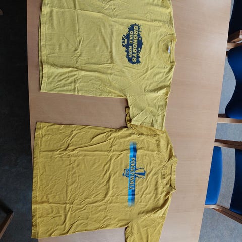 Brøndby IF fodbold merchandise sæt indeholder en gul rygsæk med logo, en gul kasket med logo, en blå t-shirt med tryk, en gul-blå fodbold og et halstørklæde i klubbens farver. Sættet er egnet til fans og til brug ved fodboldarrangementer eller som samlerobjekter.