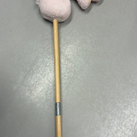 Kæphest fra Teddykompaniet med flotte detaljer. Hesten er brun med en hvid mule og manke. Den har bidsel og grimme af ruskindsinspireret stof. Den har et træskaft med hjul og håndtag, der gør den let at holde i. Den kan også lave lyde.